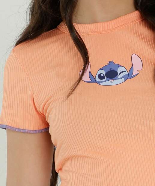 Blusa Juvenil Cropped Canelada Stitch Disney Tam 10 a 16