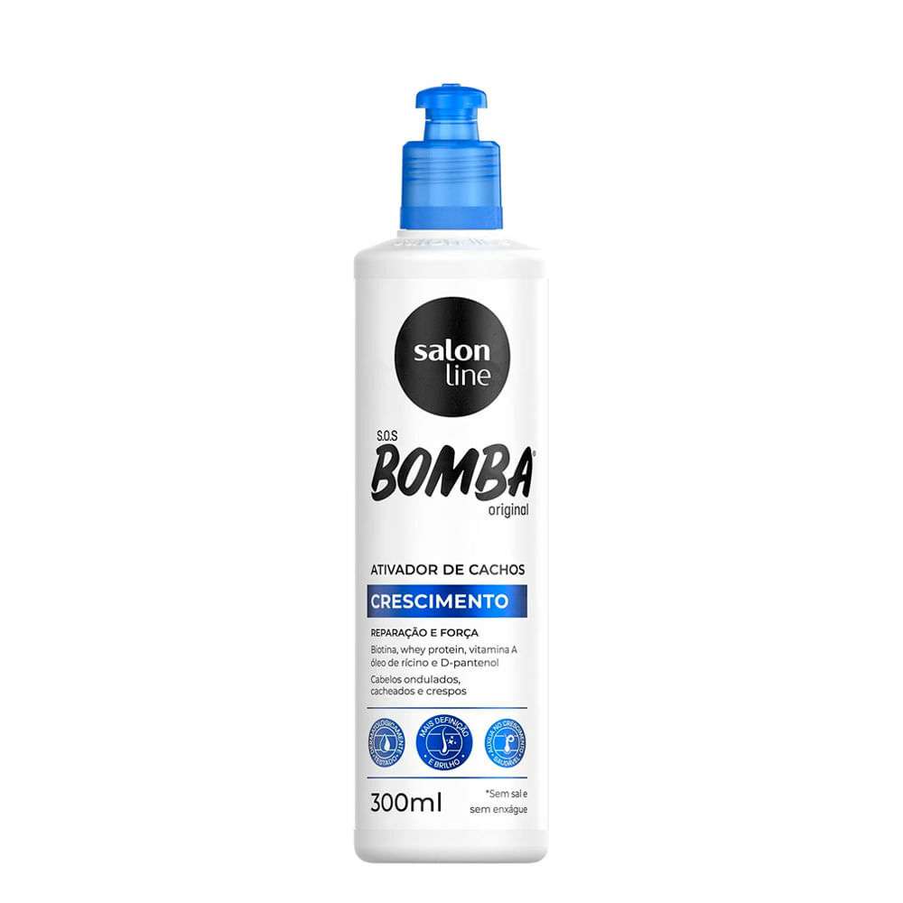 Ativador Salon Line Bomba Original 300mlTransforme seus cachos com o Ativador Salon Line Bomba Original! Este produto é ideal para quem busca definição e hidratação. Com uma fórmula poderosa, ele proporciona cabelos macios, brilhantes e sem frizz. IndicaçãoIndicado para todos os tipos de cabelos cacheados e crespos, especialmente aqueles que precisam de um carinho extra de hidratação e definição. TecnologiaO Ativador Bomba conta com ingredientes que promovem a hidratação intensa, além de oferecer proteção contra o ressecamento. Sua fórmula é enriquecida com óleo de rícino, que ajuda a fortalecer os fios, e proteínas que garantem uma definição duradoura. BenefíciosHidratação profundaDefinição dos cachosProteção contra o frizzBrilho intenso e maciezFácil aplicação e controle do volumeModo de usoCom os cabelos limpos e úmidos, aplique o Ativador Salon Line Bomba na palma das mãos.Distribua uniformemente pelos fios, amassando suavemente para ativar os cachos.Deixe secar naturalmente ou utilize um difusor para acelerar o processo.ResultadoCabelos definidos, hidratados e com um brilho incrível, prontos para arrasar em qualquer ocasião! Composição: Aqua, Glicerina, Óleo de Rícino, Proteínas Hidrolisadas, entre outros. PrecauçõesManter em local fresco e ao abrigo da luz. Uso externo. Evite contato com os olhos. Em caso de irritação, suspenda o uso e consulte um médico. Não realizamos testes em animais. Transforme seus cachos e sinta a diferença com o Ativador Salon Line Bomba Original 300ml!