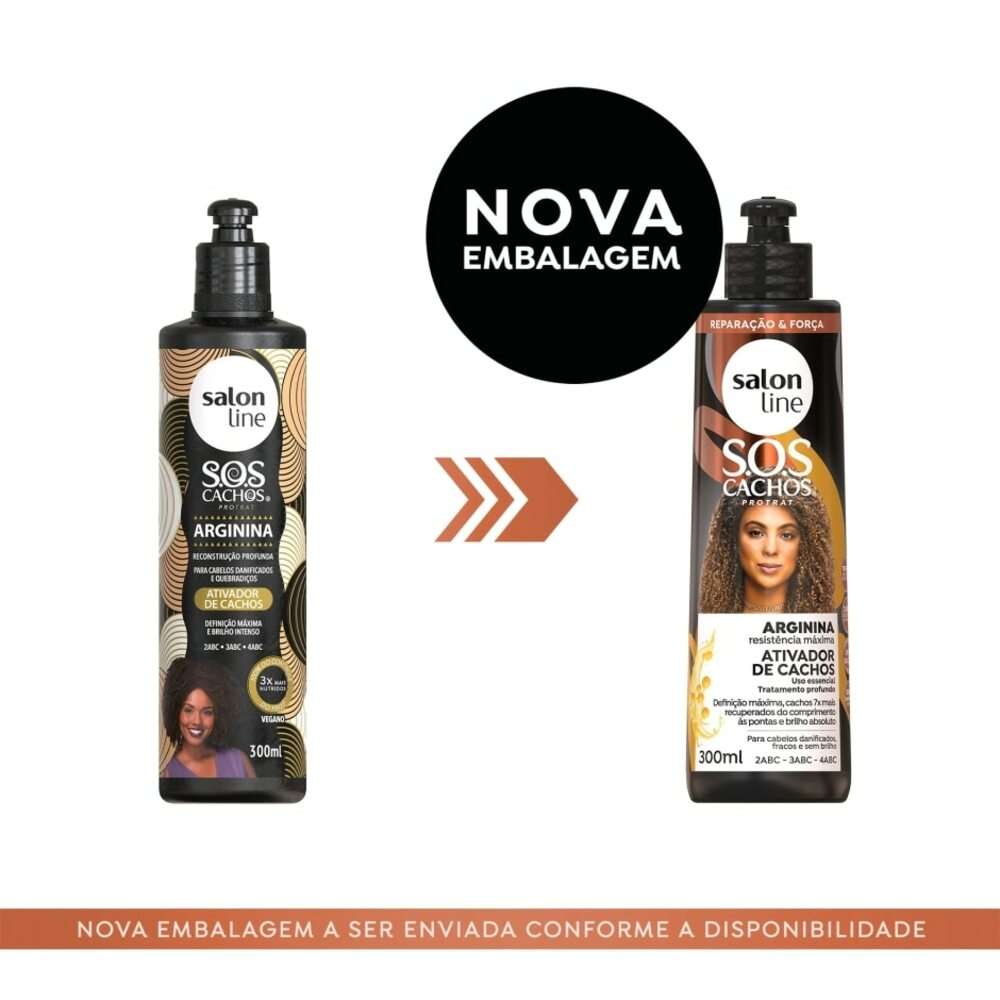 Ativador Salon Line Sos Arginina Reconstrução 300mlTransforme seus cabelos com o Ativador Salon Line Sos Arginina Reconstrução! Este produto é perfeito para quem busca hidratação intensa e reconstrução capilar. Com uma fórmula poderosa, ele age diretamente na estrutura dos fios, promovendo a recuperação dos cabelos danificados e ressecados. Indicação:Ideal para todos os tipos de cabelo, especialmente os que passaram por processos químicos e necessitam de nutrição e força. Tecnologia:Arginina: Este aminoácido essencial ajuda a fortalecer os fios, reduzindo a quebra e promovendo elasticidade.Óleo de Coco: Proporciona uma hidratação profunda, deixando os cabelos macios e sedosos.Proteínas: Contribuem para a reconstrução da fibra capilar, restaurando a saúde e o brilho dos cabelos.Benefícios:Hidratação profundaRedução da quebraReconstrução da fibra capilarBrilho intenso e maciezControle do frizzModo de uso:Aplique o Ativador Salon Line Sos Arginina nos cabelos úmidos.Massageie suavemente, distribuindo o produto por toda a extensão dos fios.Não enxágue e finalize como desejar.Resultado:Cabelos fortes, hidratados e com um brilho radiante! Você notará a diferença desde a primeira aplicação. Precauções: Manter em local fresco e ao abrigo da luz. Uso externo. Em caso de contato com os olhos, enxágue bem. Manter fora do alcance de crianças. Composição: Água, Arginina, Óleo de Coco, e outros ativos que promovem a saúde capilar. Informações Adicionais:Não realizamos testes em animais. Experimente o Ativador Salon Line Sos Arginina Reconstrução 300ml e dê aos seus cabelos o tratamento que eles merecem!
