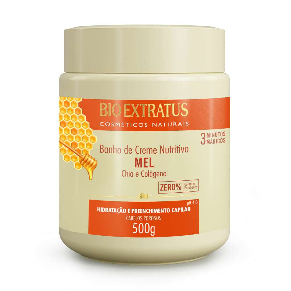 Oferece intensa hidratação e nutrição para cabelos porosos, preenchendo as falhas da fibra capilar. Mel, chia e colágeno, juntos, repõem umidade, massa e nutrientes em profundidade. Zero% corantes e parabenos. pH 4,0.