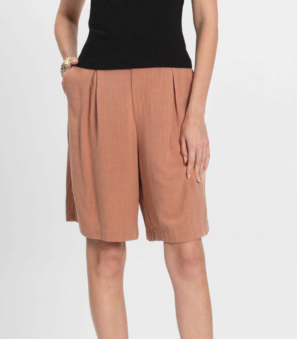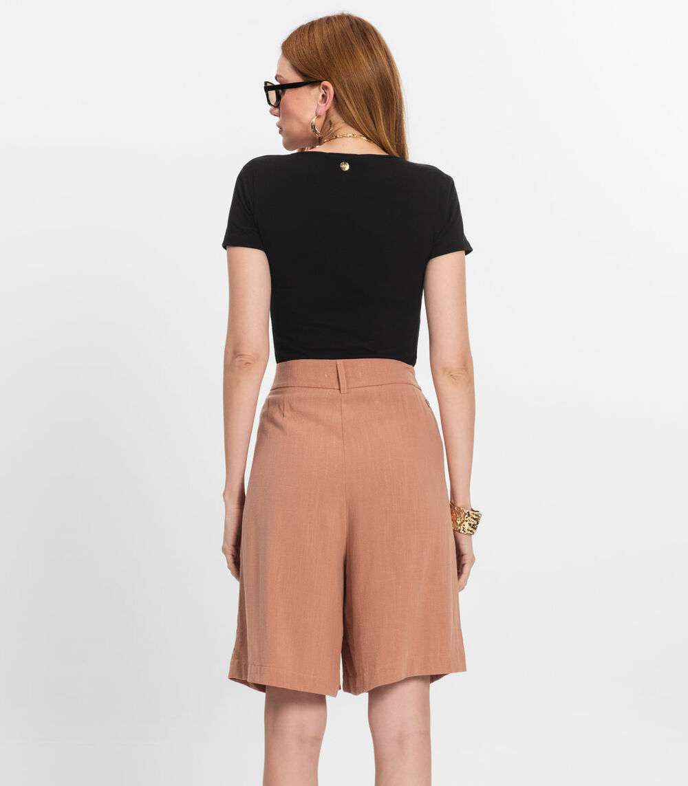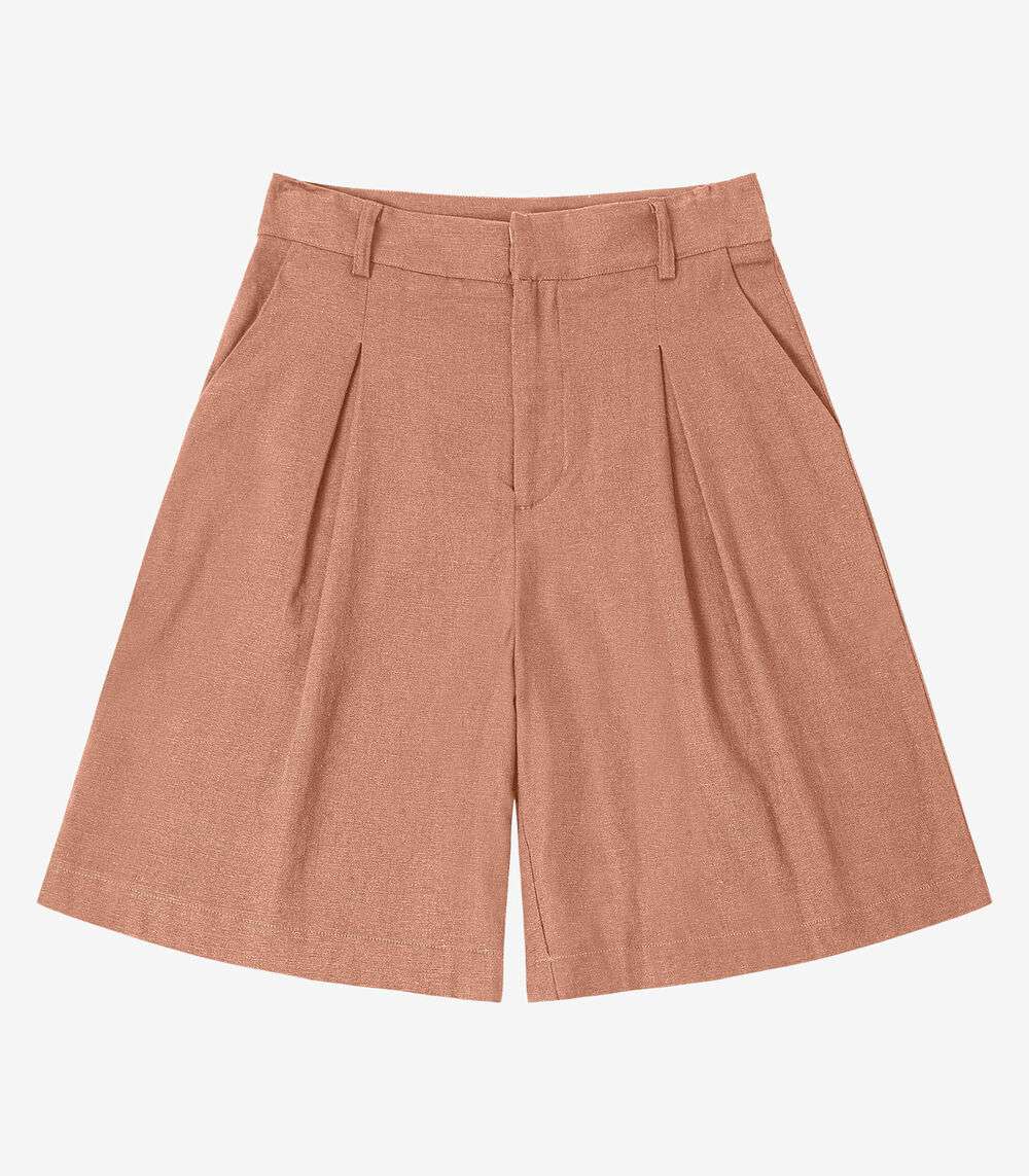 Bemuda Feminina Em Linho Com Bolsos Endless Marrom