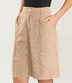 Bermuda Jorts Feminina Reta Em Sarja Dianna Marrom