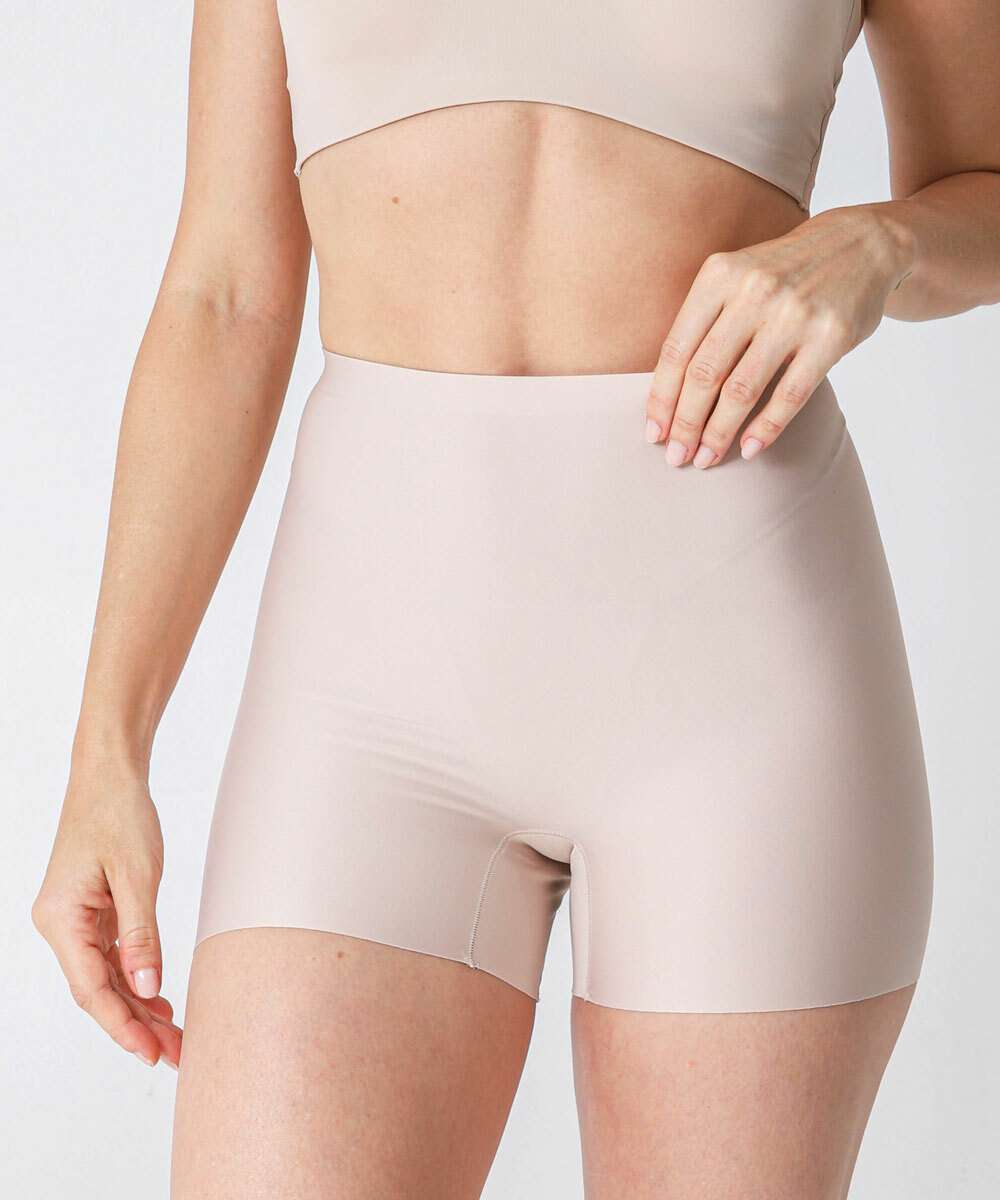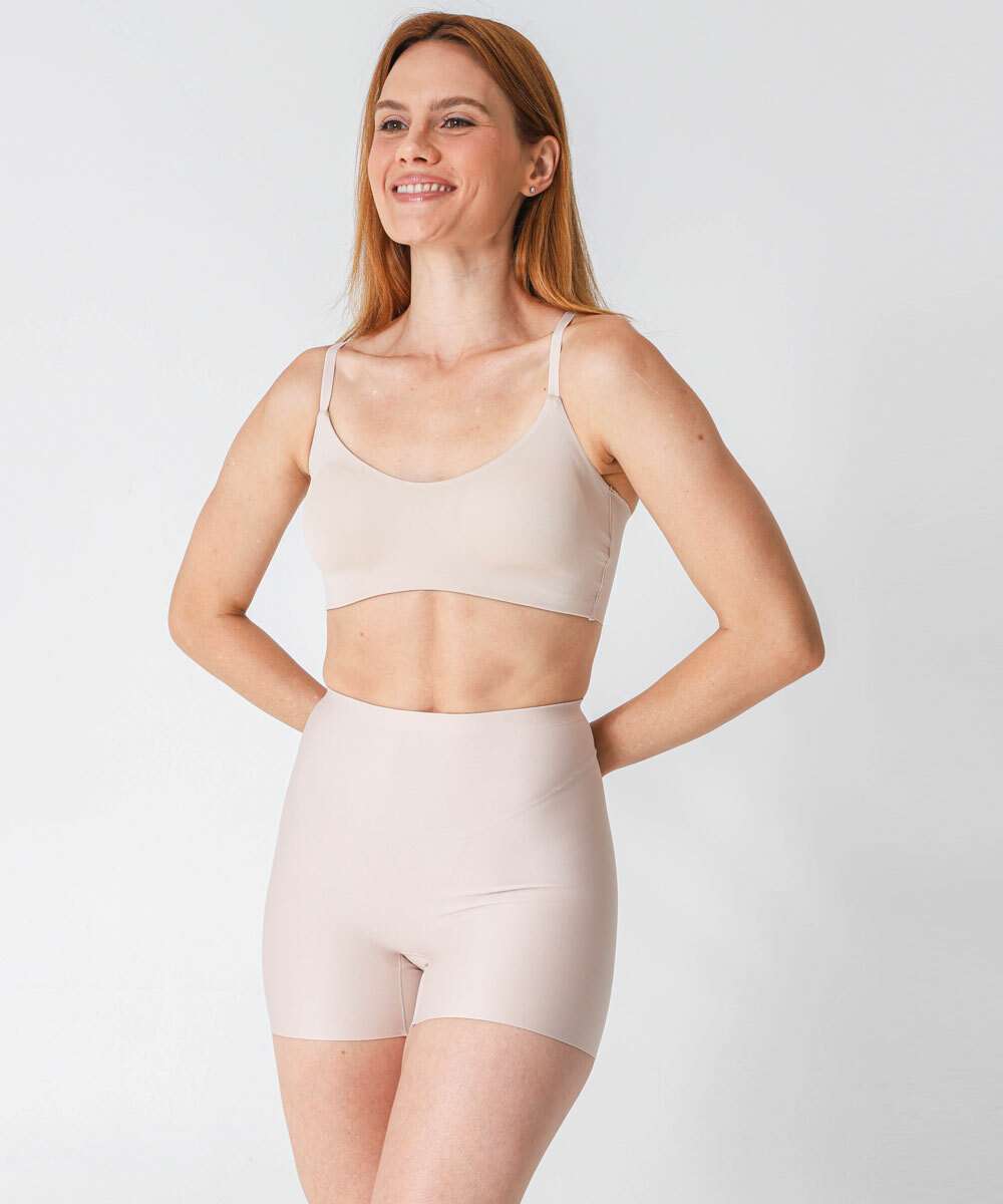 Bermuda modeladora invisível confeccionada em tecido poliamida e elastano. Possui cós com elástico, acabamento no tom e sem costura.