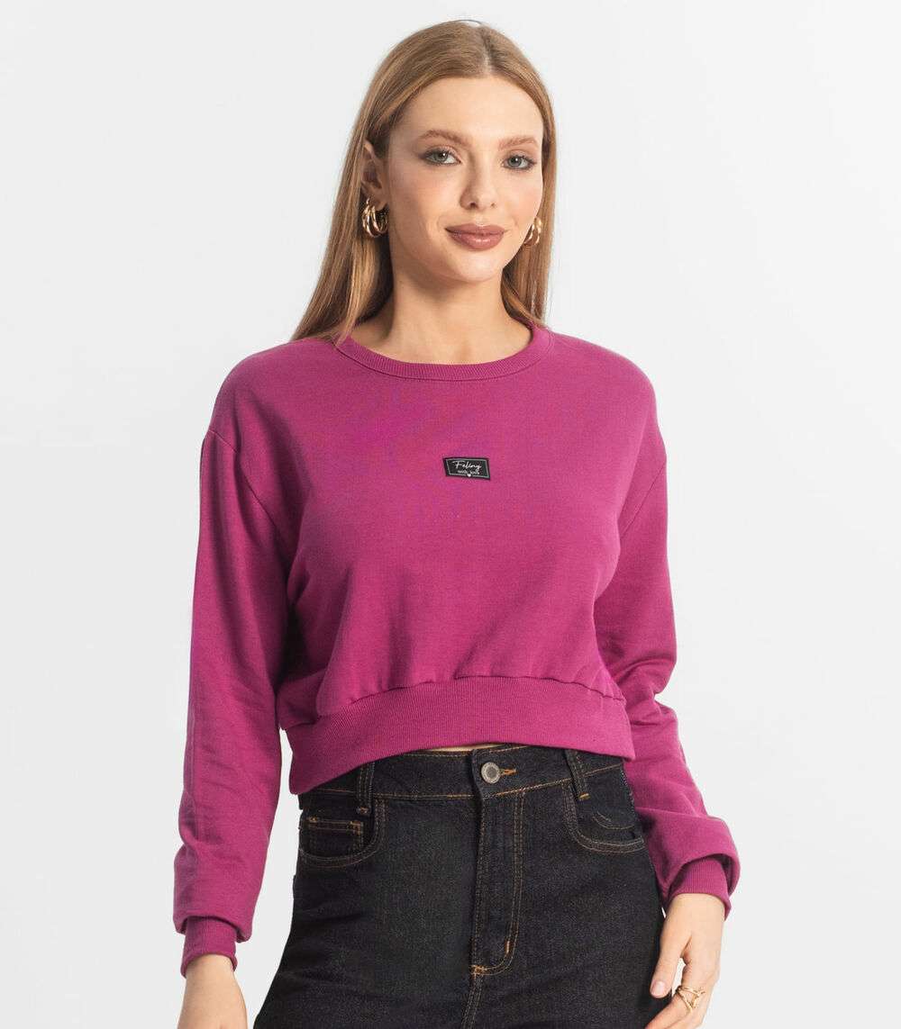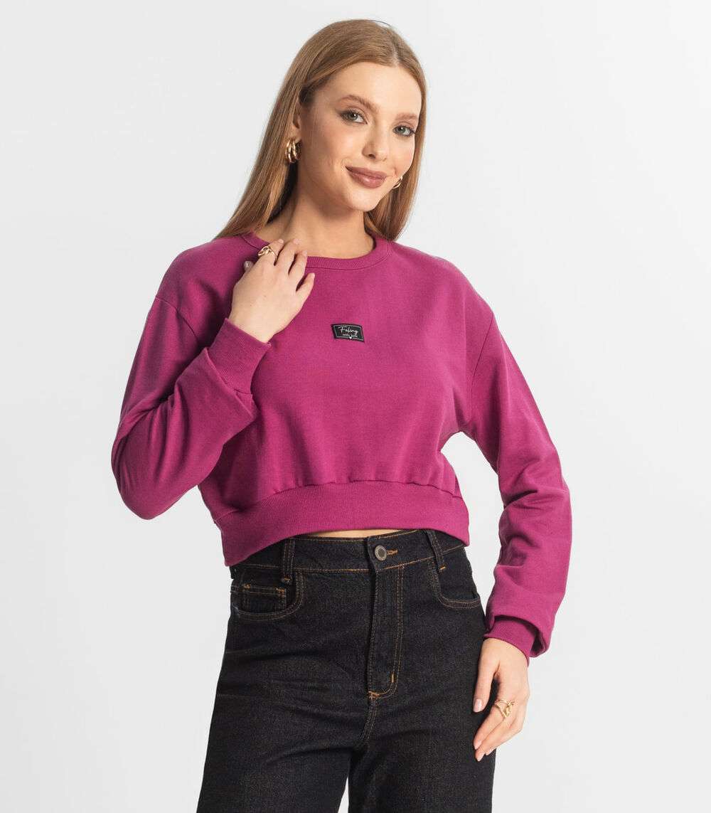 Blusão Cropped Feminino De Moletom Rech Sul Roxo