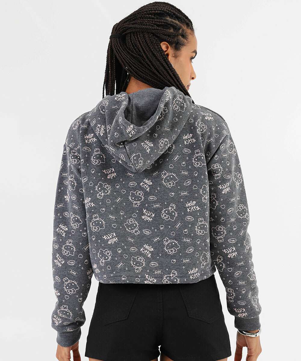 Blusão Feminino Capuz Moletom Hello Kitty Cinza