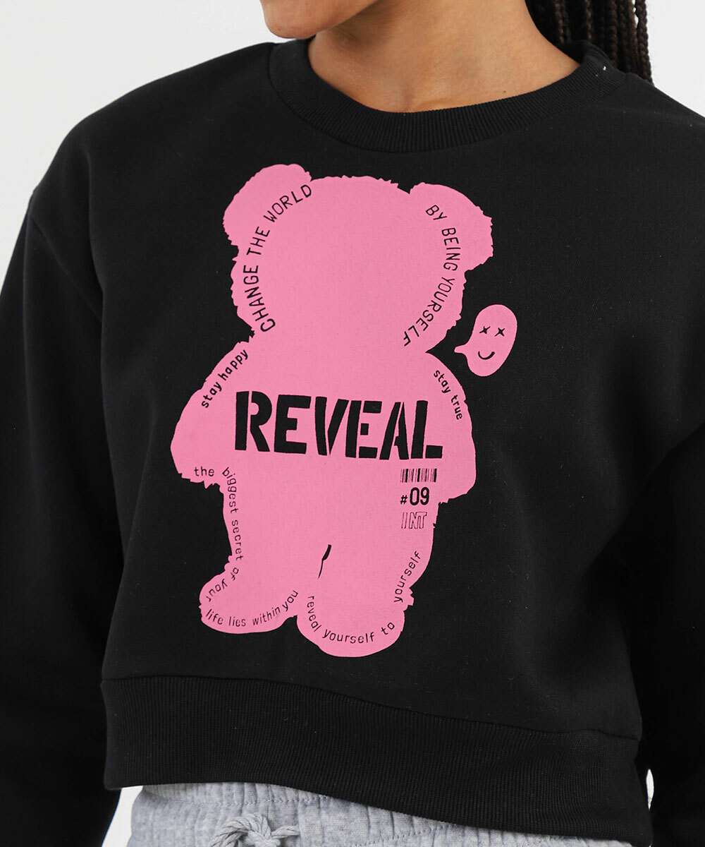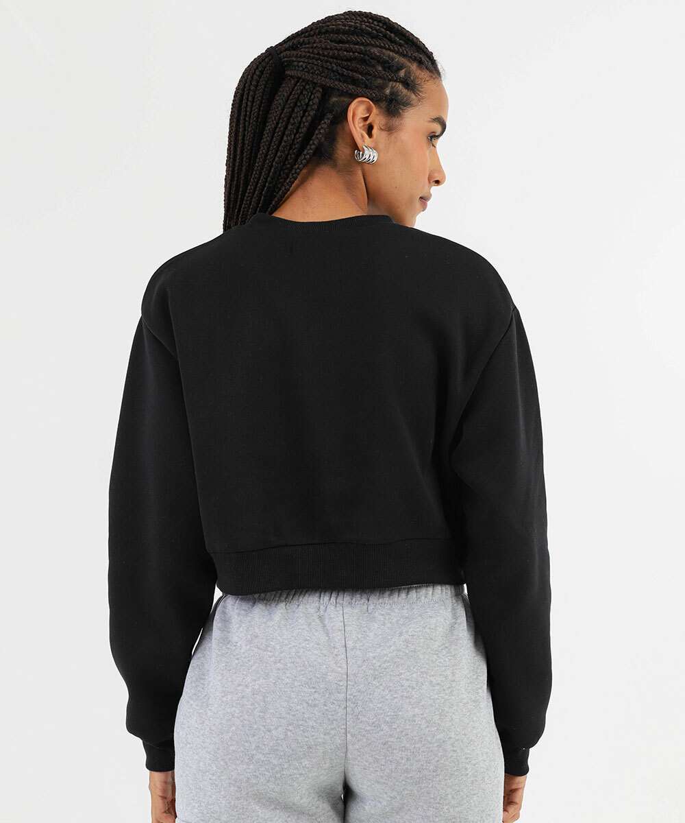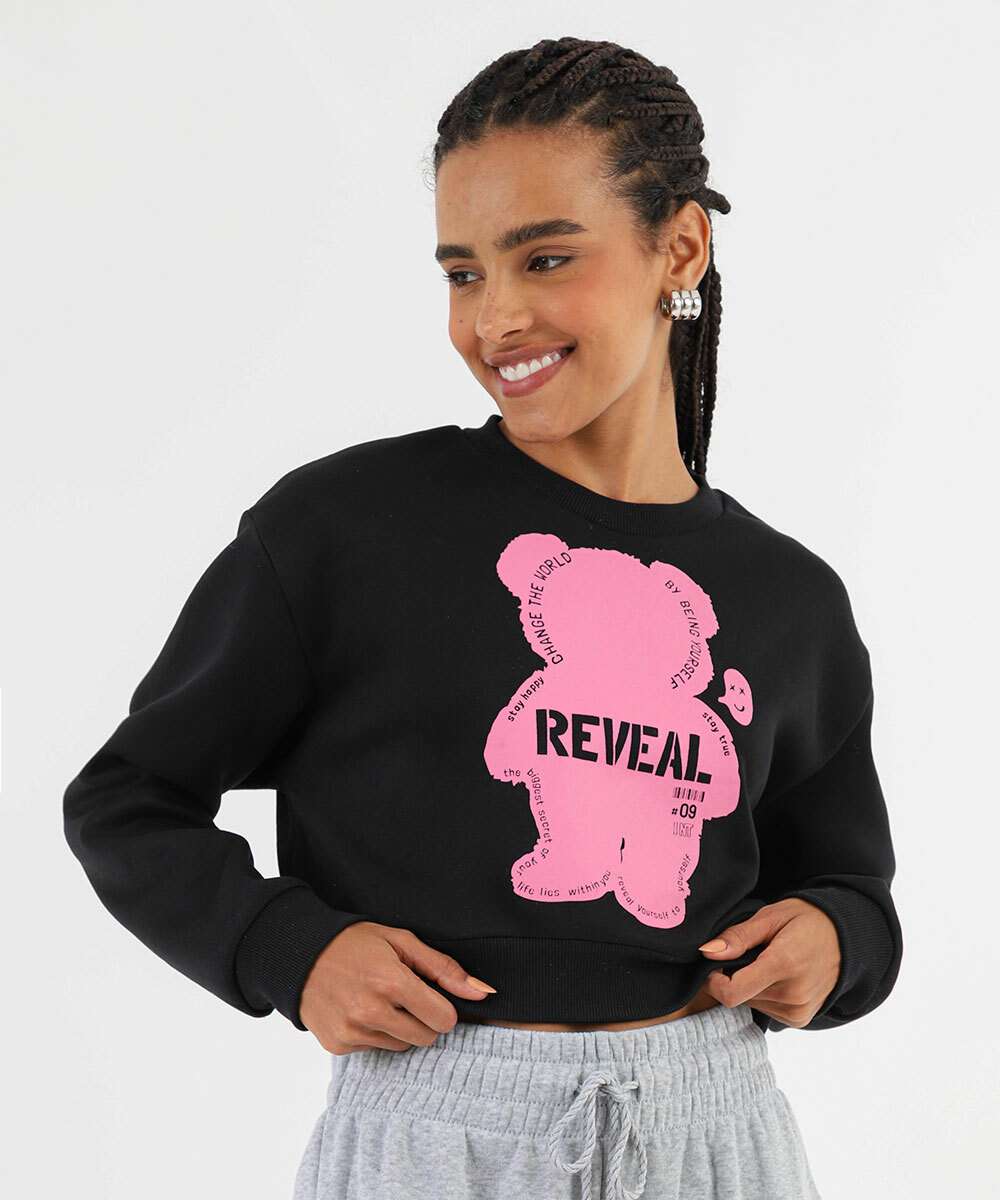 Blusão Feminino Cropped Moletom Estampado Marisa Preto