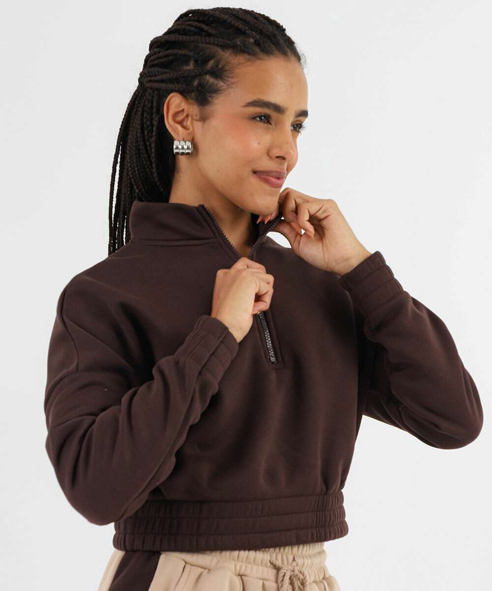 Blusão Feminino Cropped Moletom Flanelado Marisa Marrom