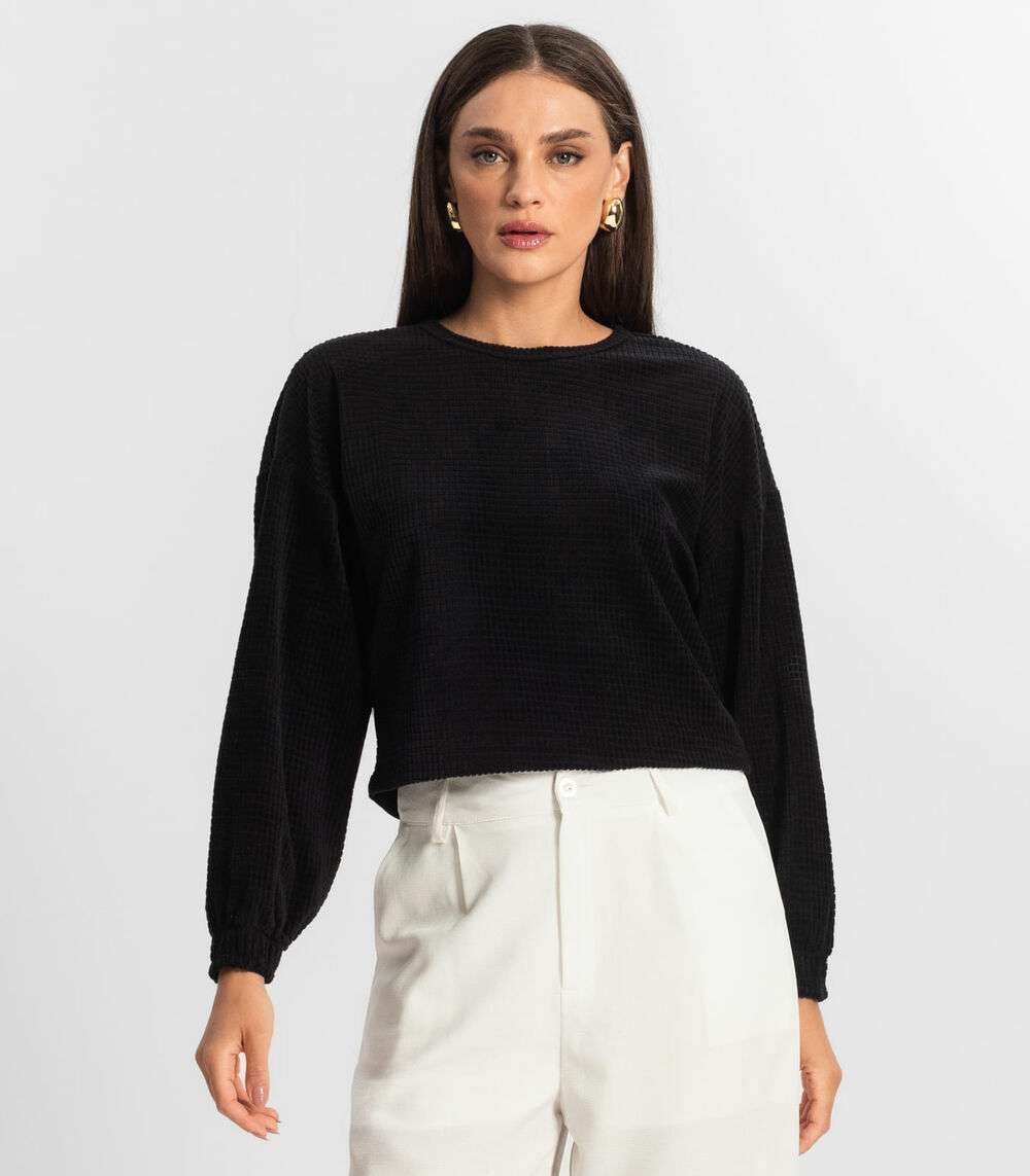 Blusão Feminino Select, desenvolvido em Plush Texturizado, que combina sofisticação e conforto com um toque macio e aconchegante. Possui decote redondo, garantindo conforto e praticidade ao vestir. Cava deslocada bem ampla proporcionando um visual moderno e liberdade de movimento. Punho virado com elástico, oferecendo ajuste prático e toque estiloso. Ideal para quem busca estilo e aconchego nos dias mais frios.