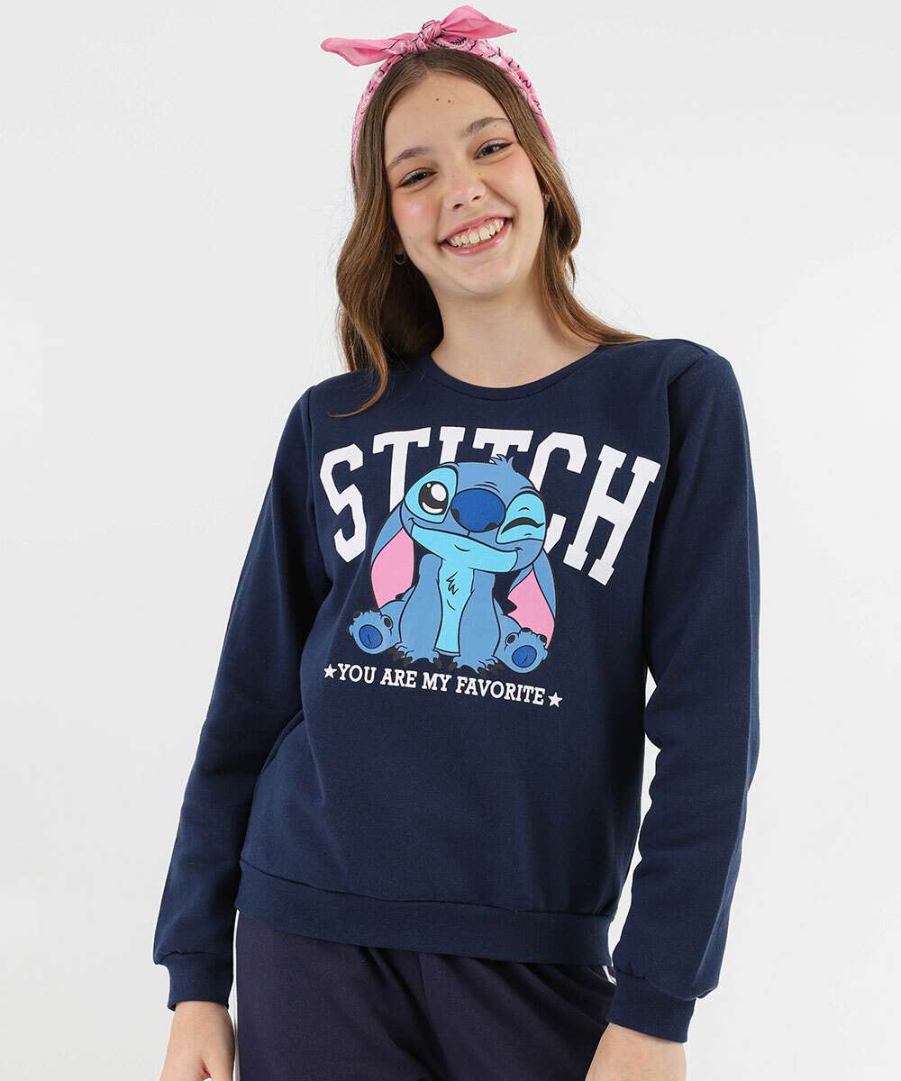 Blusão Infantil Moletom Stitch Disney Tam 10 a 16 Azul