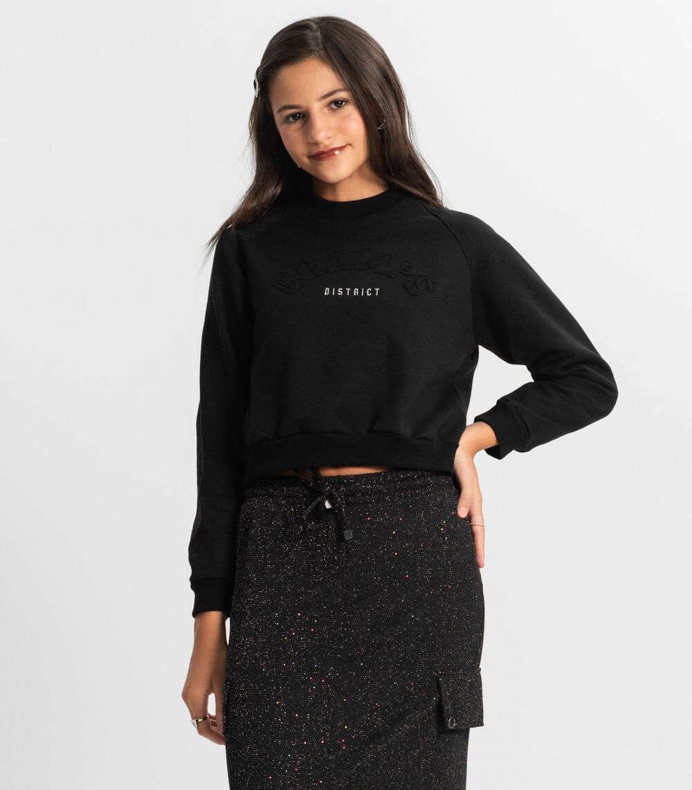 Blusão Juvenil Feminino Em Moletom Minty Preto