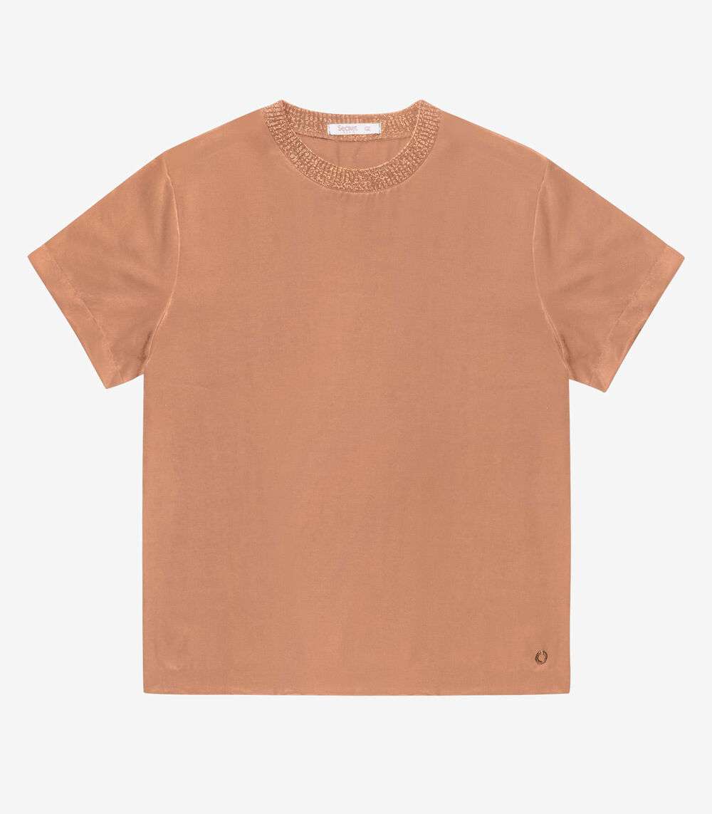 Blusa Acetinada Plus Size Secret Glam Marrom