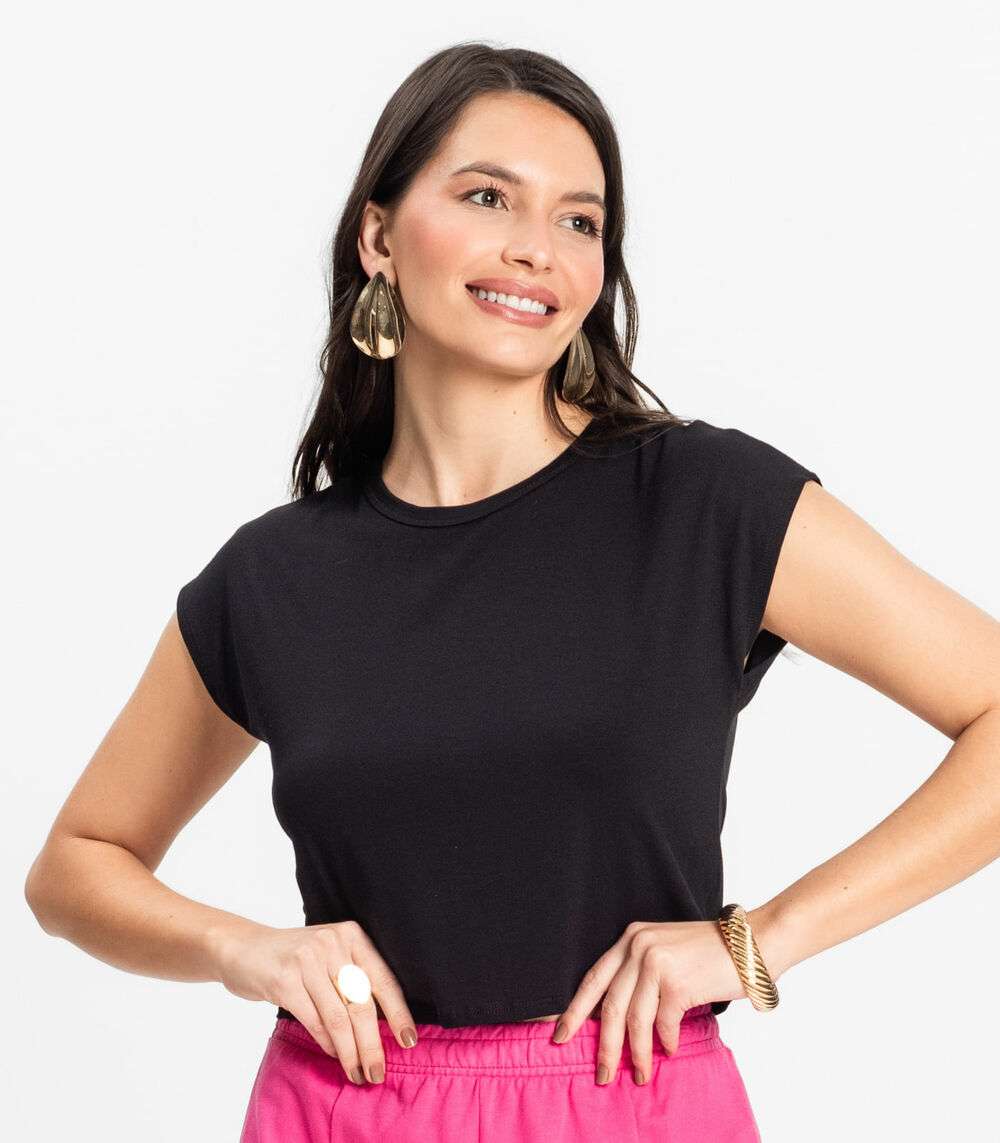 Blusa Básica Feminina Viscotorcion Rovitex Preto