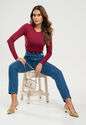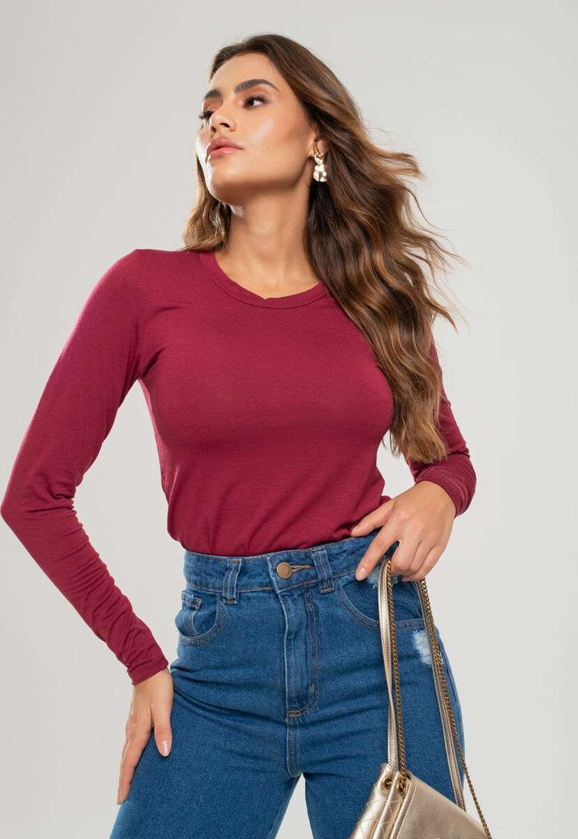 Blusa Básica Manga Longa e Gola Redonda Malha Vinho Salvatore Fashion