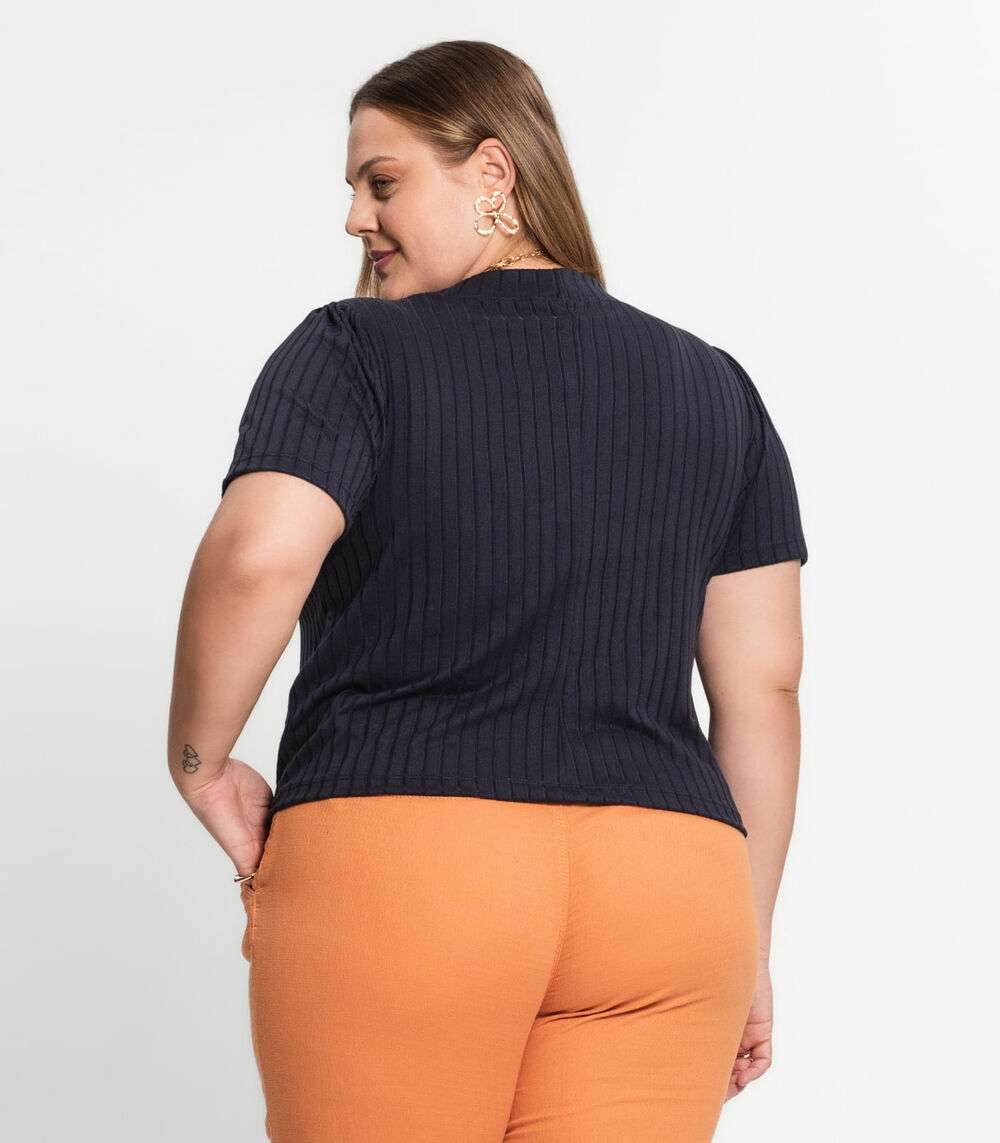 Blusa Canelada Plus Infinita Cor Azul