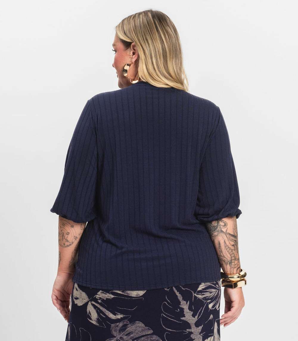 Blusa Canelada Plus Infinita Cor Azul
