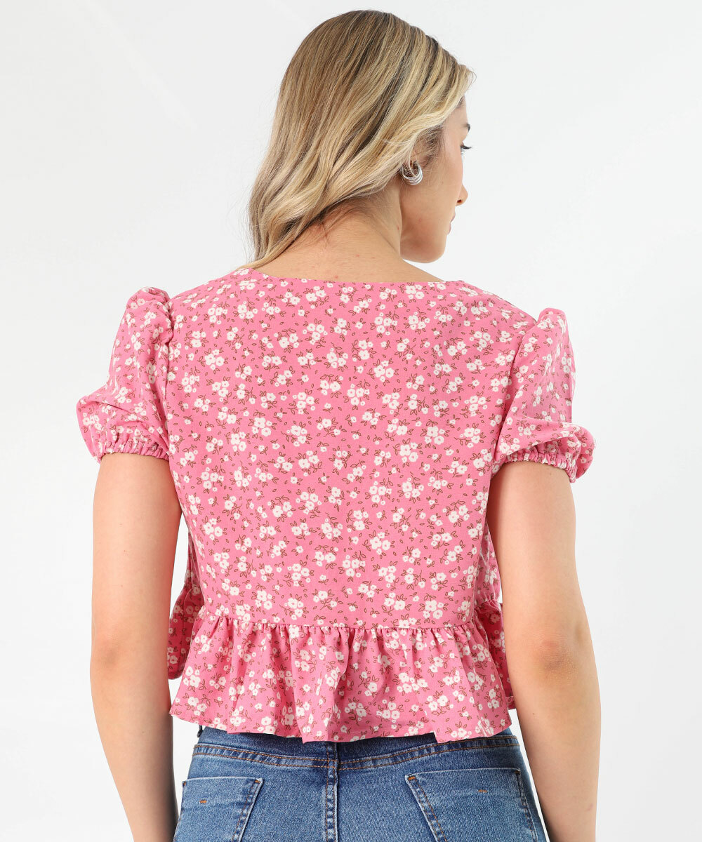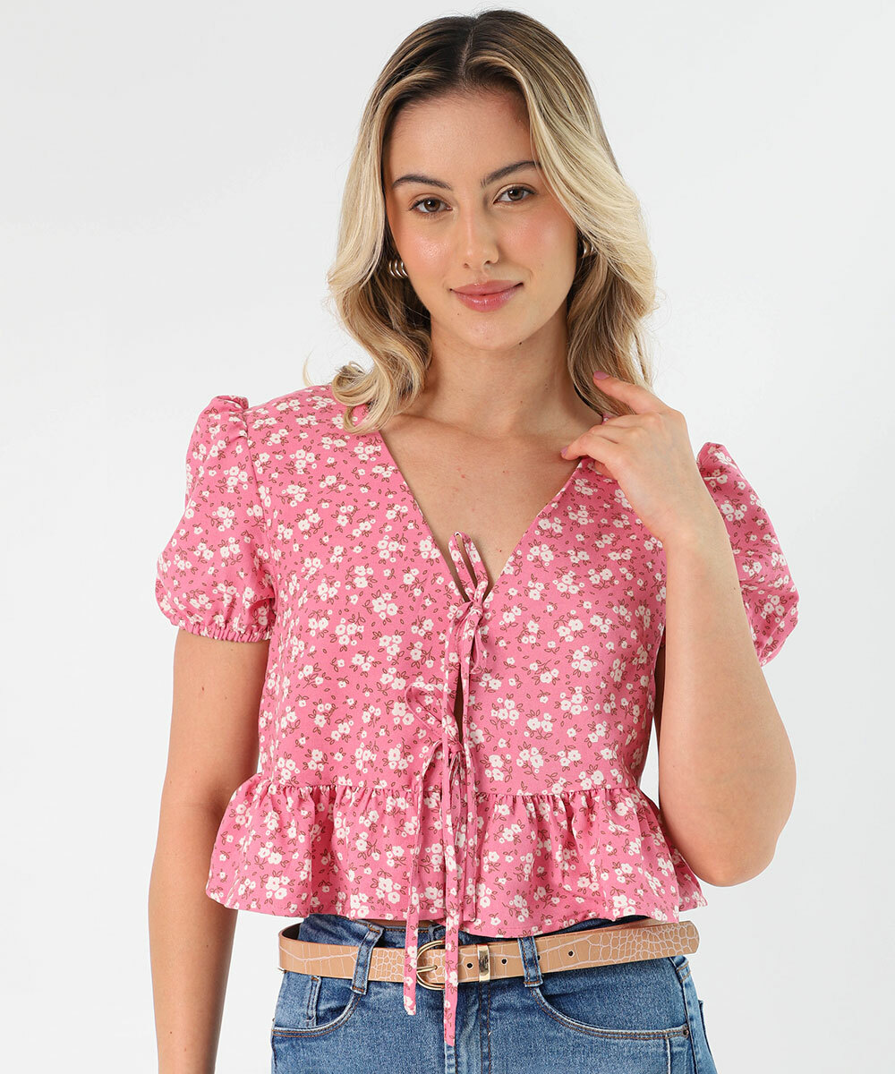 Blusa Cropped Feminina Estampada Amarração Marisa Rosa