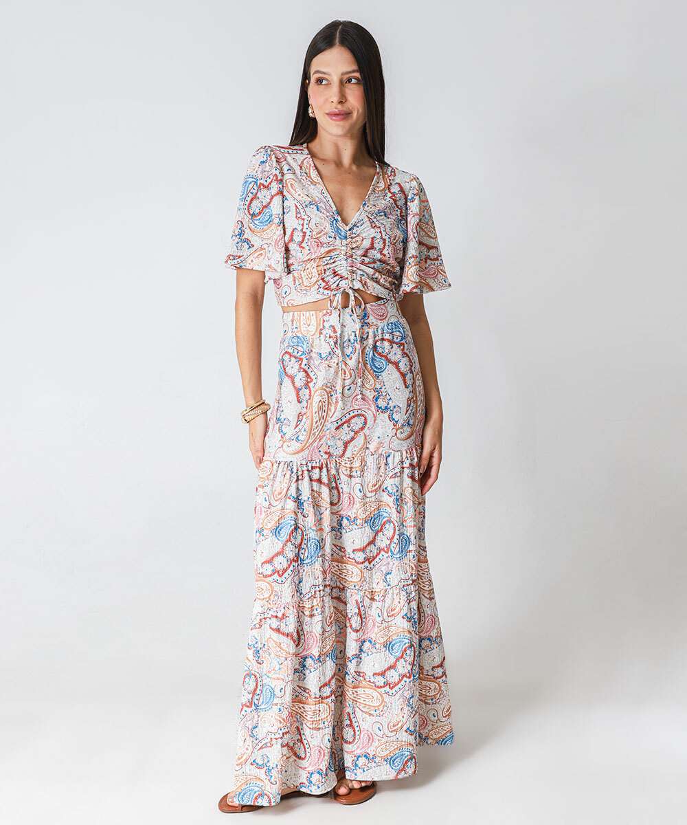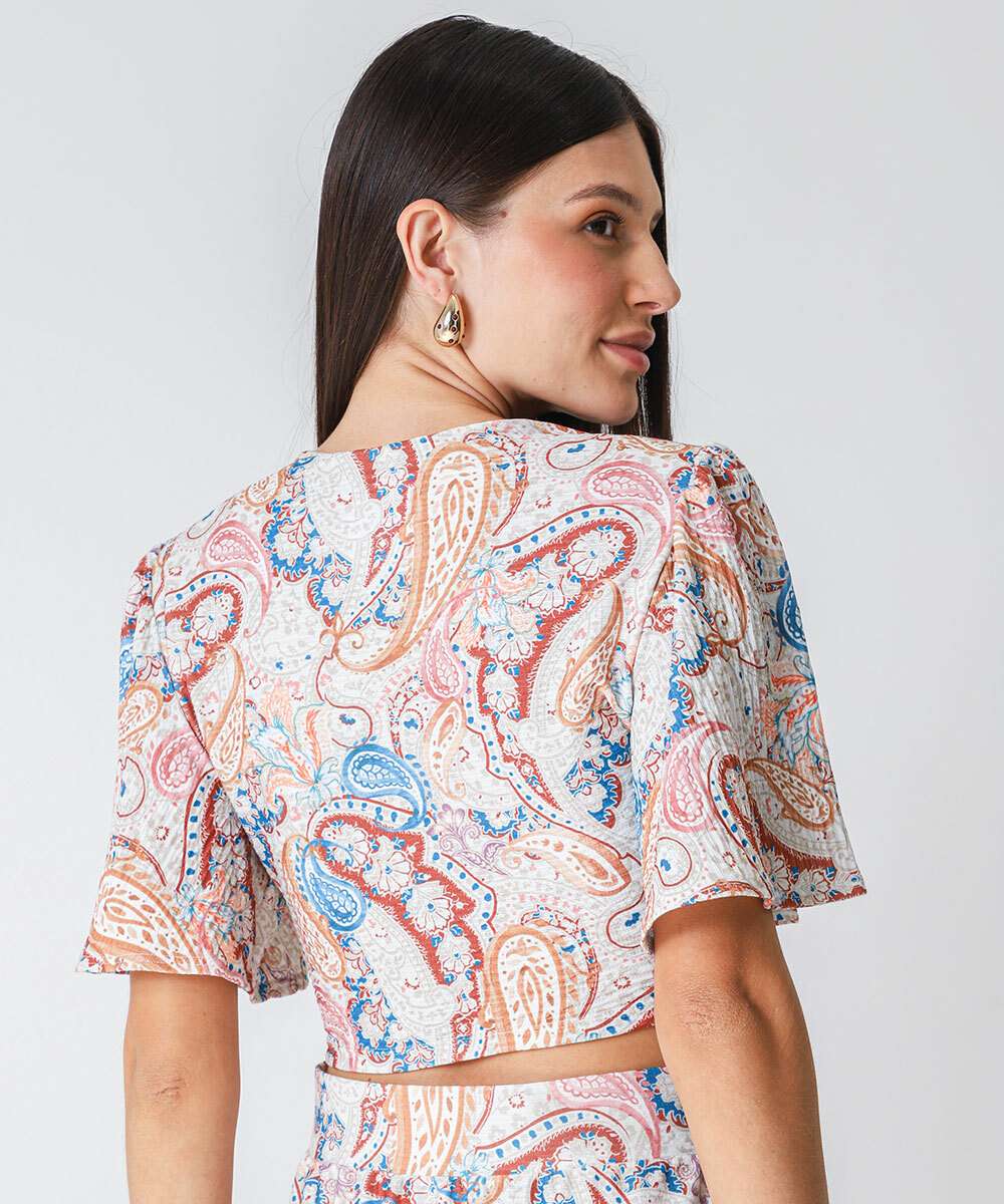 Blusa Cropped Feminina Estampada Drapeado Marisa Bege