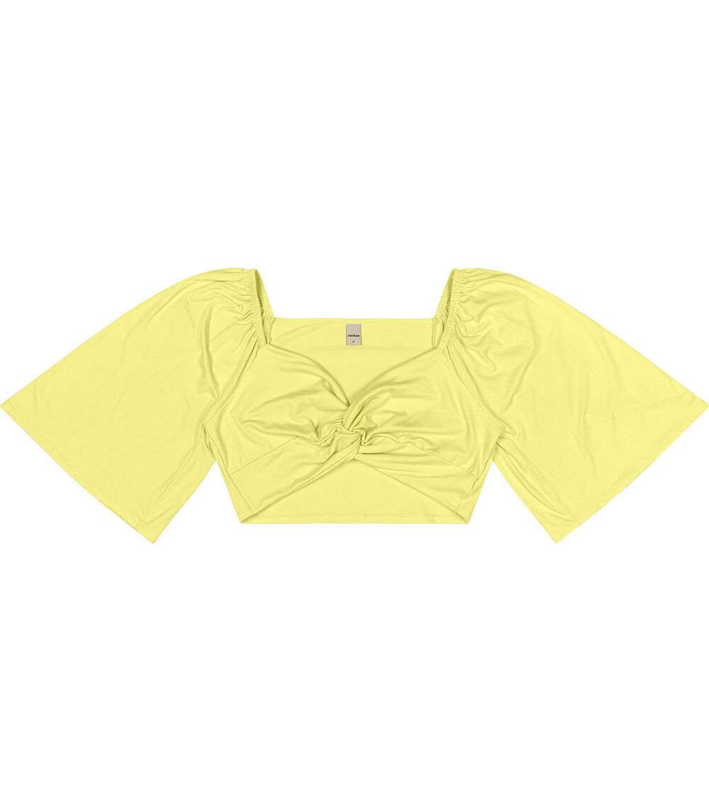 Blusa Cropped Feminina Nózinho Rovitex. Desenvolvida em Viscotorcion com toque confortável, decote quadrado, mangas amplas e nózinho no centro do decote. A peça tem um toque fresquinho além de ser leve e super estilosa.