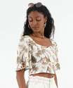 Blusa Cropped Feminina Paisley Lastex Marisa Bege