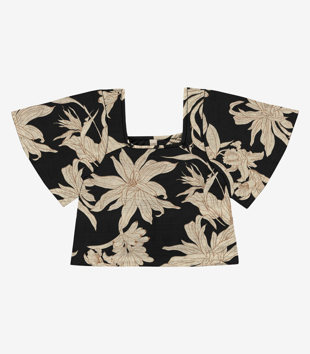 Blusa Cropped Feminina Visco Maquinetada Rovitex Preto