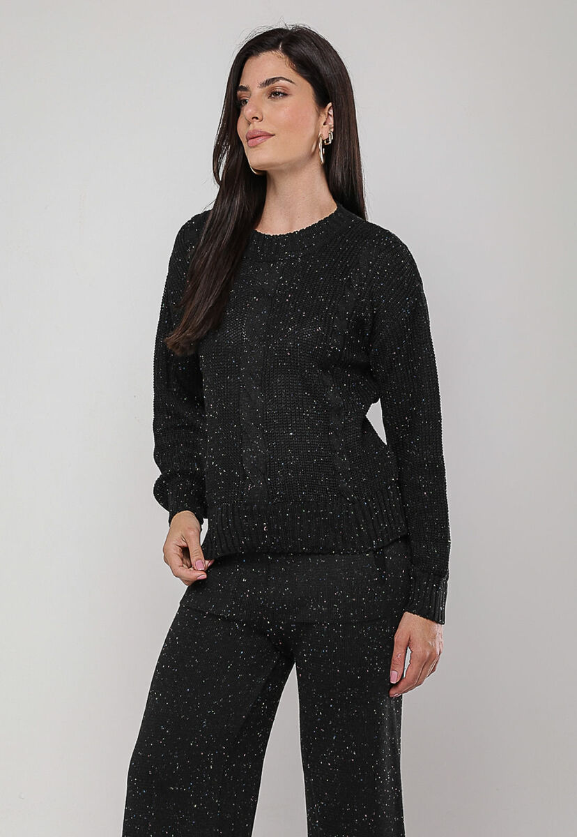 Blusa de Tricot Boton? com Trama Texturizada Preto Salvatore