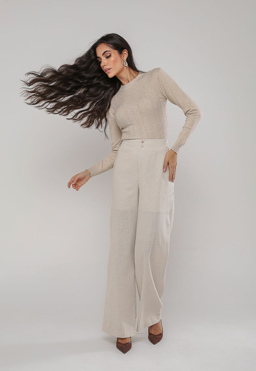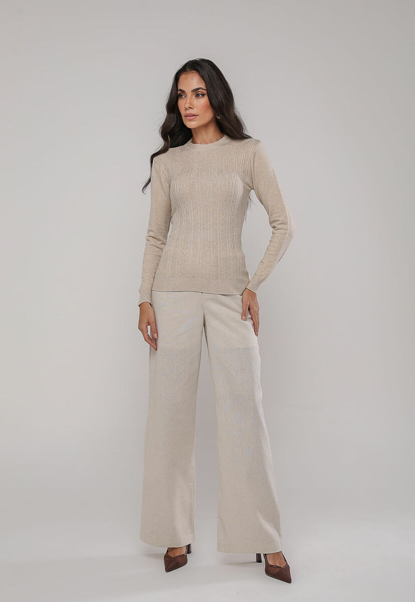 Blusa de Tricot Com Tramas Texturizada Bege Claro Salvatore