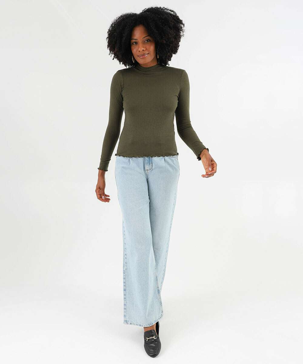 Blusa Feminina Canelada Manga Longa Marisa Verde