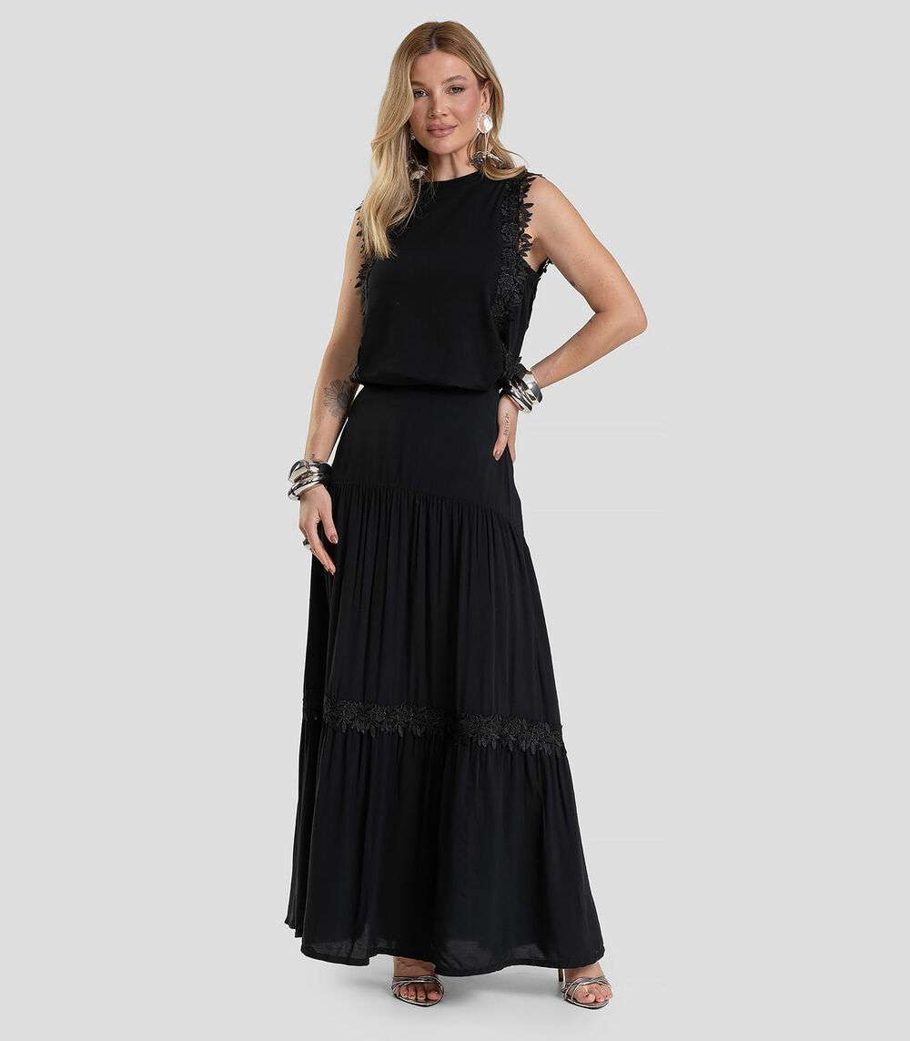 Blusa Feminina Com Renda Guipir Dianna Preto