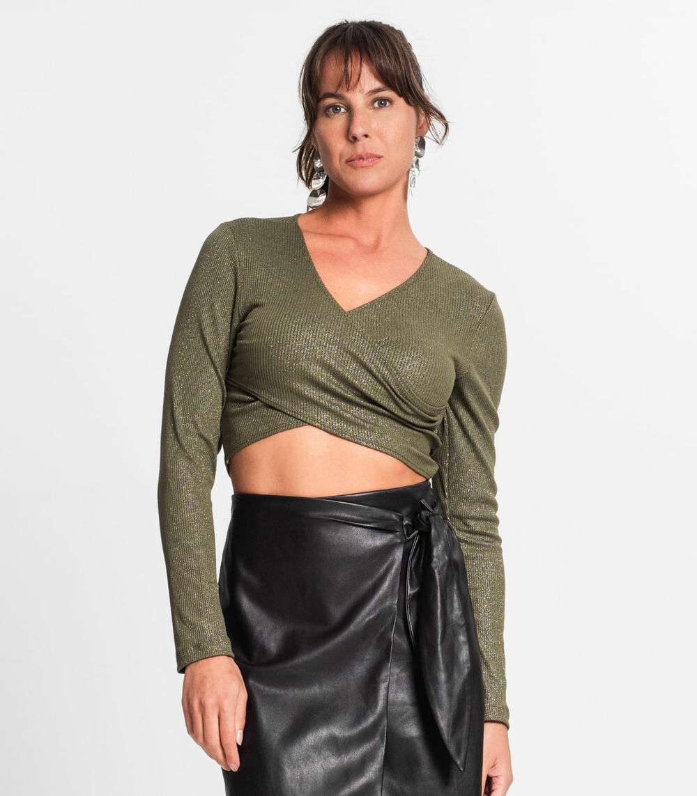 Blusa Feminina Em Ribana Canelada Lurex Rovitex Verde