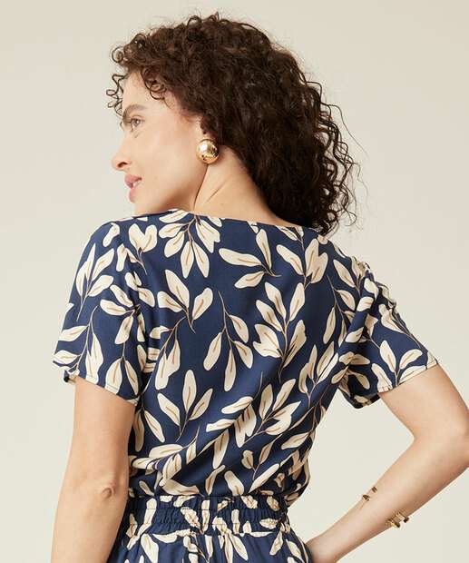 Blusa Feminina Estampa Folhas Manga Curta Marisa