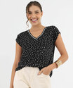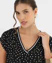 Blusa Feminina Estampa Poá Manga Curta Marisa Preto