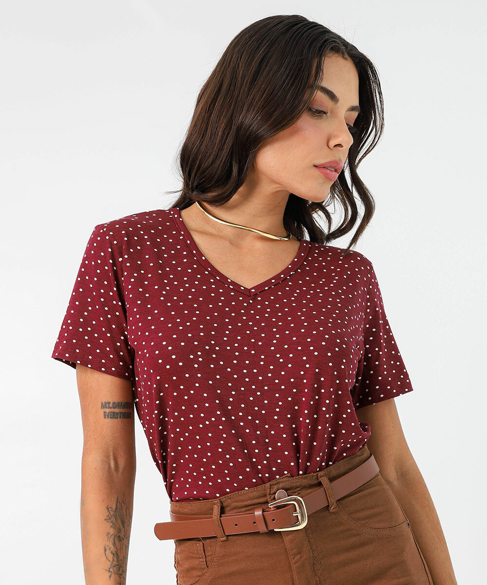 Blusa Feminina Estampa Poá Manga Curta Marisa Vermelho