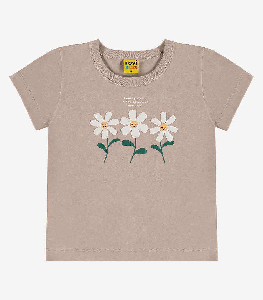 Blusa Feminina Infantil Manga Curta Rovi Kids Marrom