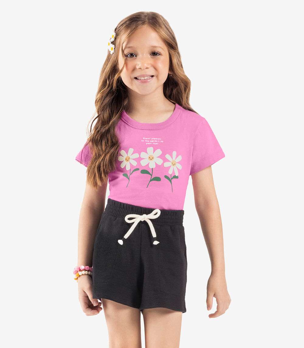 Blusa Feminina Infantil Manga Curta Rovi Kids Rosa