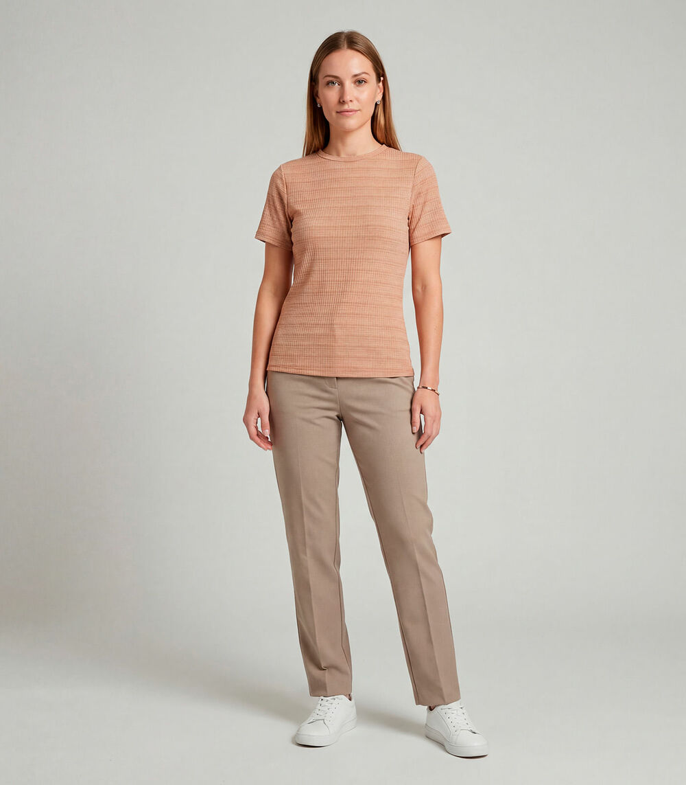 A Blusa Feminina Justa com Manga Curta Infinita Cor é uma peça básica e versátil para o dia a dia. Confeccionada em 98% poliamida e 2% elastano, oferece toque macio, leve elasticidade e conforto ao vestir. O modelo possui gola redonda e caimento levemente justo, que valoriza a silhueta sem perder a liberdade de movimento. Prática e fácil de combinar, é ideal para compor diversos looks, desde produções casuais até combinações mais modernas. ¿