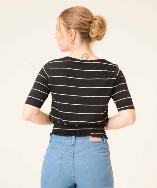 Blusa Feminina Listrada Lastex Manga Curta Marisa