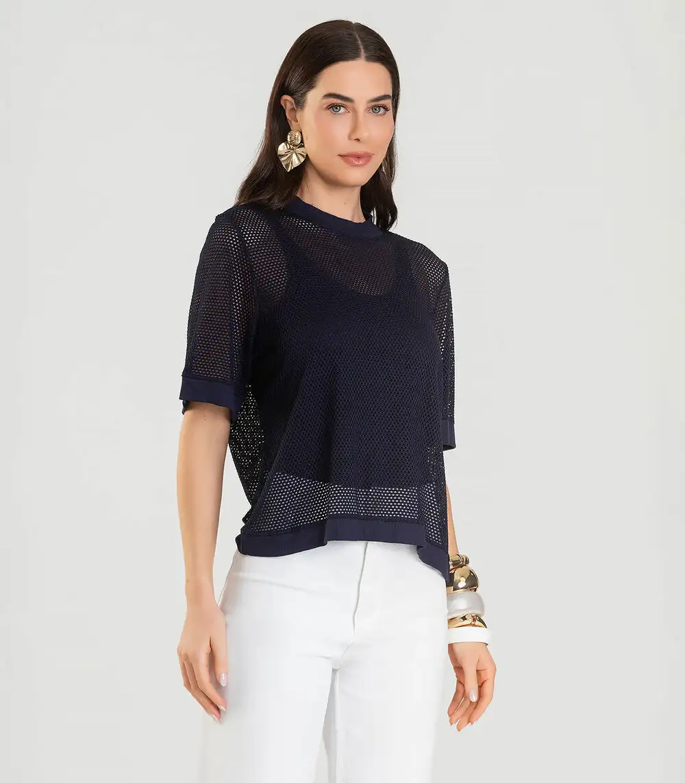 Blusa Feminina Malha Screen Infinita Cor Azul
