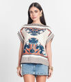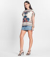 Blusa Feminina Manga Curta Estampada Donna Bege