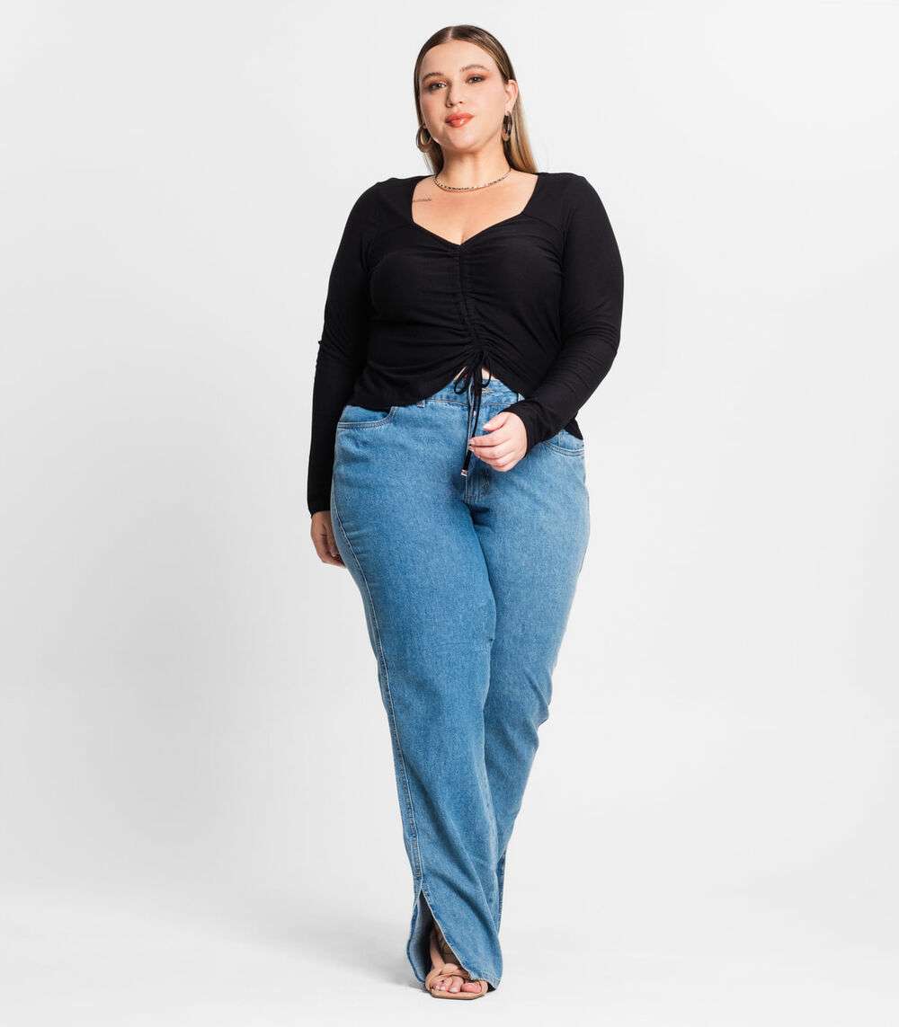 Blusa Feminina Manga Longa Em Viscose Secret Glam Preto