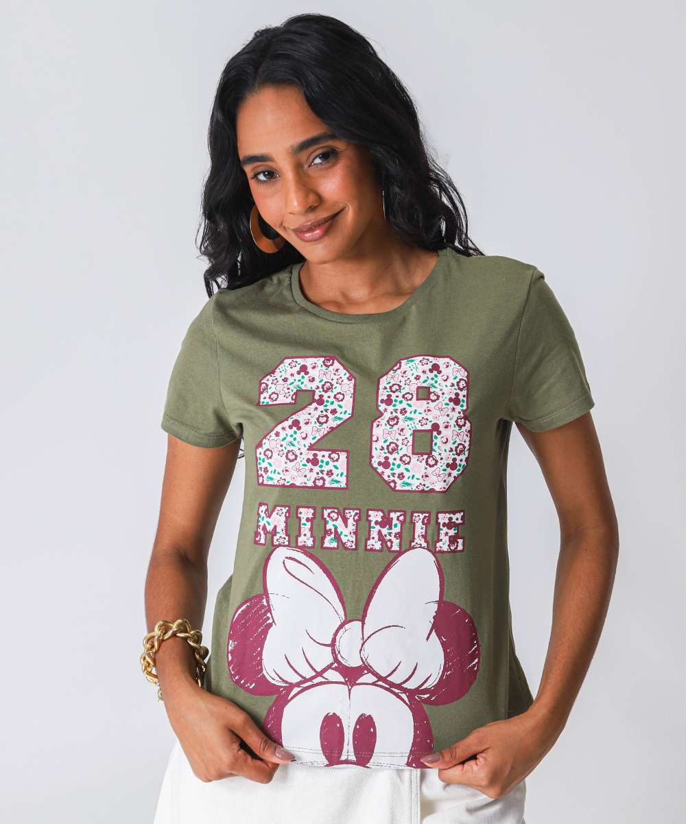 Blusa Feminina Minnie Manga Curta Verde