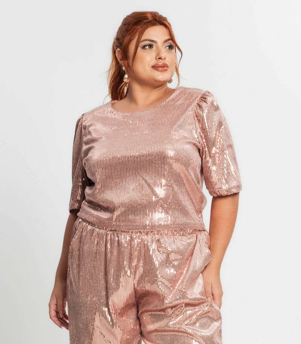Blusa Feminina Plus Size Em Paetê Secret Glam Unica