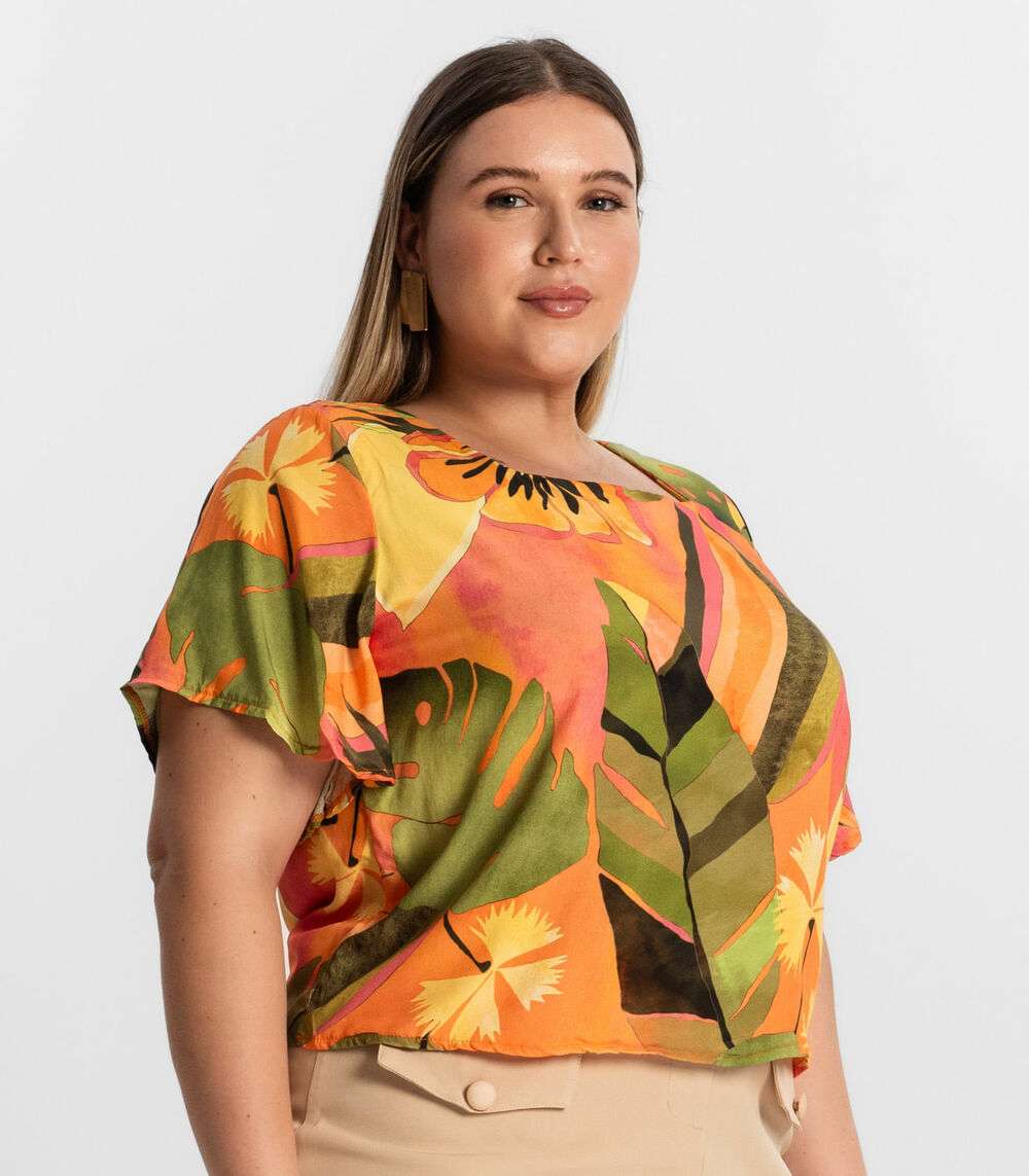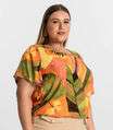 Blusa Feminina Plus Size Estampada Secret Glam Laranja