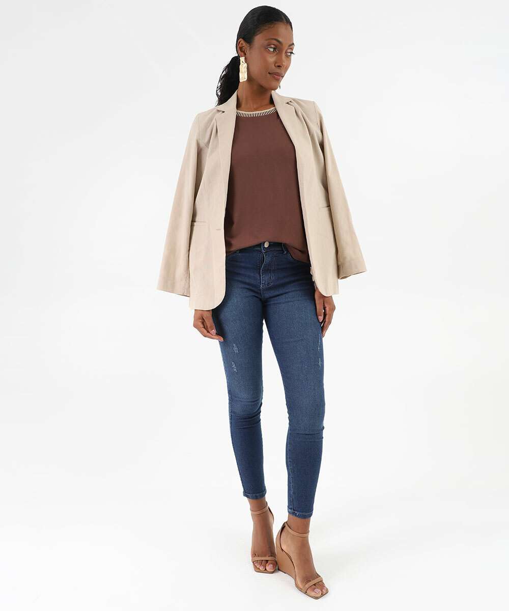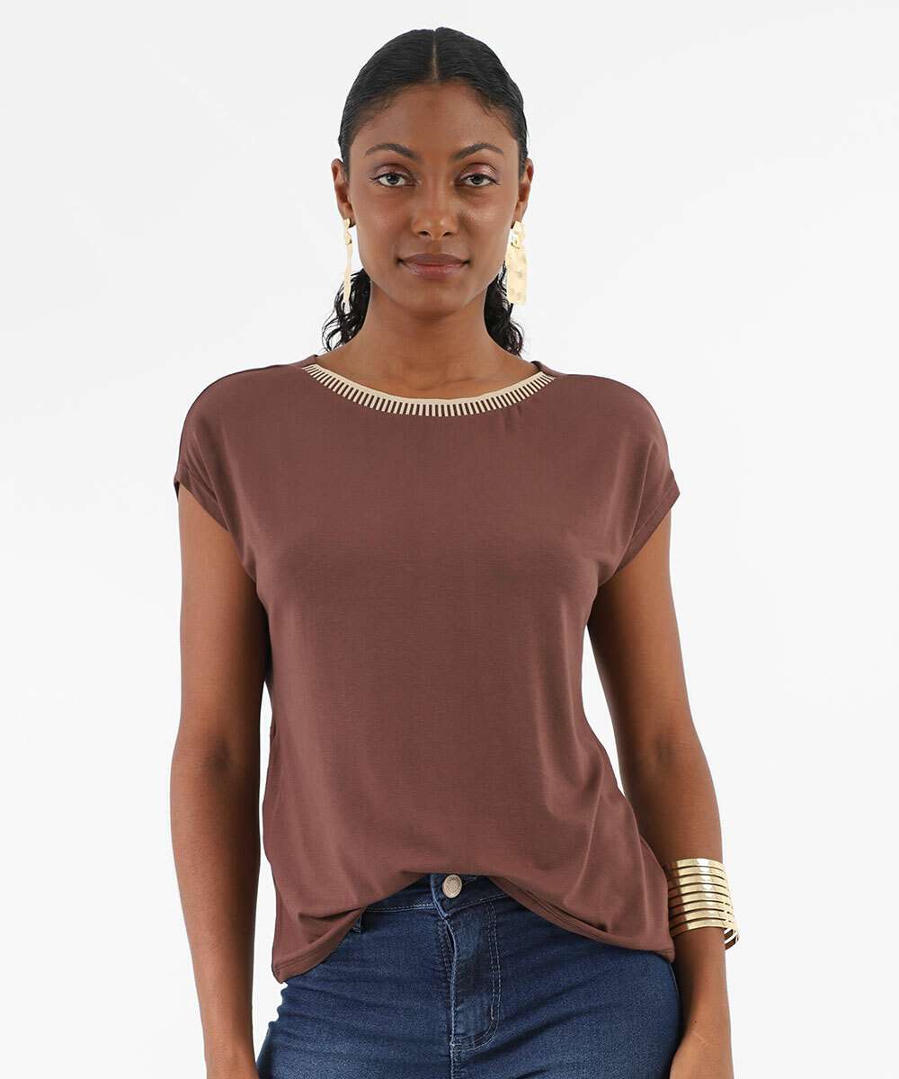 Blusa Feminina Recorte Manga Curta Marisa Marrom