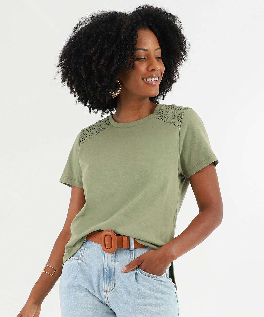Blusa Feminina Recorte Manga Curta Marisa Verde