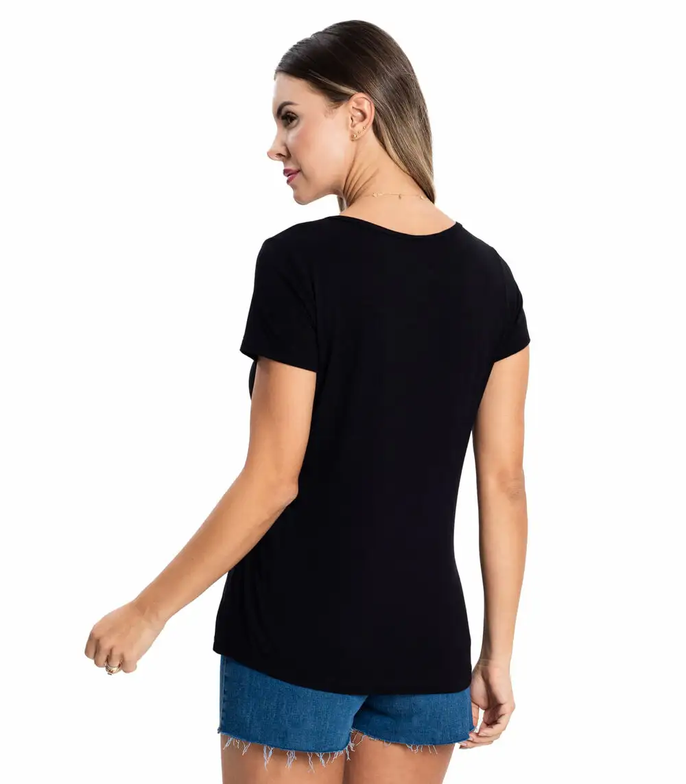 Blusa Feminina Viscotorcion Básica Rovitex Preto