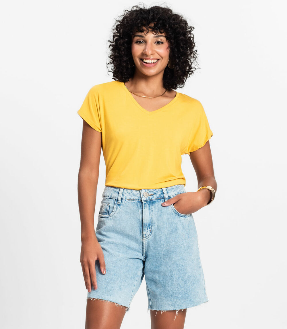 Blusa Feminina Viscotorcion Rovitex Amarelo