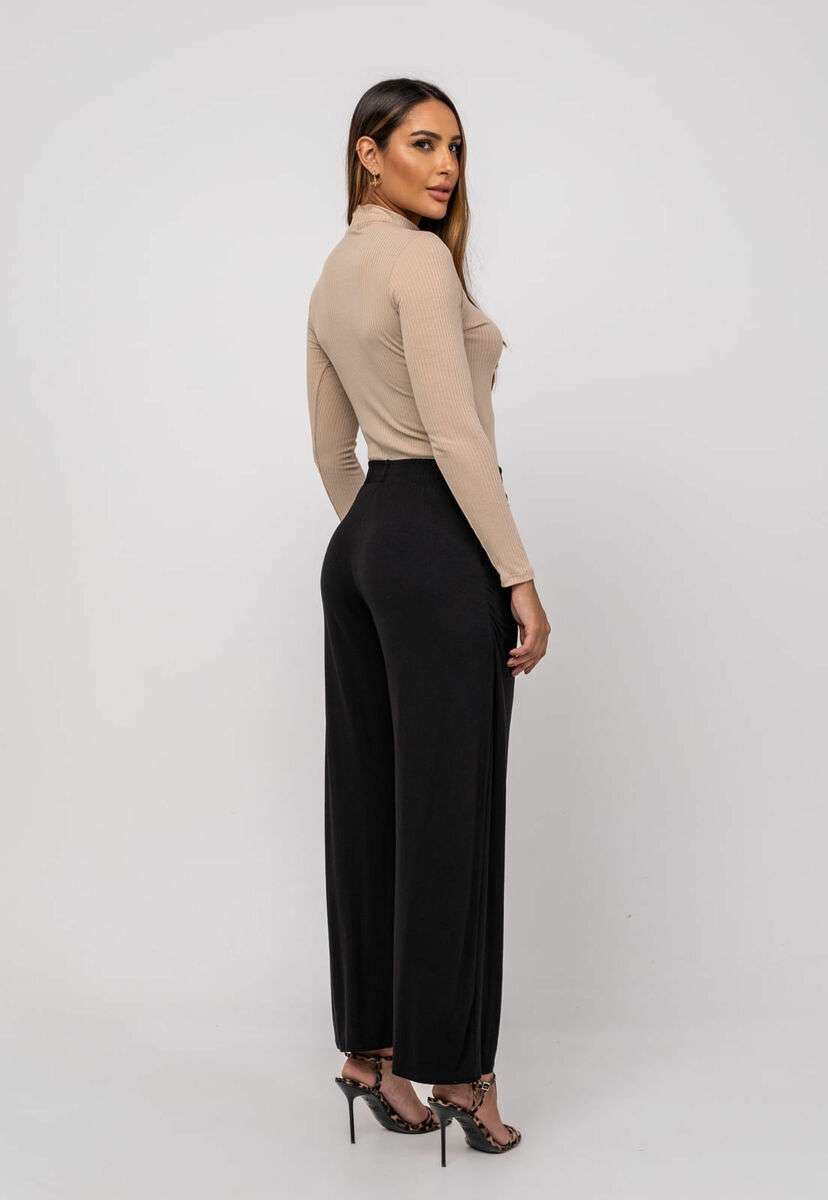 Blusa Gola Alta Manga Longa Malha Canelada Bege Salvatore Fashion