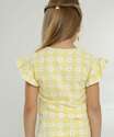 Blusa infantil, modelo cropped ideal para meninas de 04 até 10 anos de idade, confeccionada em malha algodão e elastano. Possui estampa corações, quadriculada, detalhes flocados, decote redondo, manga curta com babado, acabamento e costura no tom.