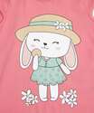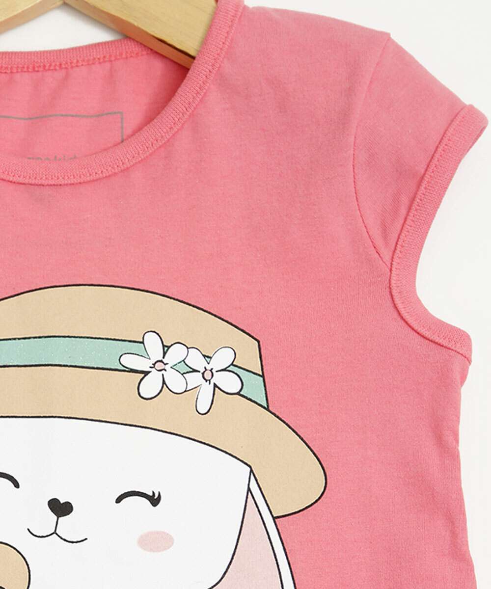 Blusa infantil, ideal para meninas de 01 até 04 anos de idade, confeccionada em malha algodão. Possui decote redondo, estampa frontal coelho, manga curta, acabamento e costura no tom.