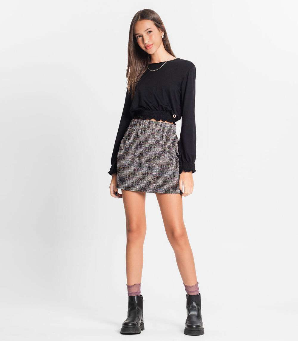Blusa Juvenil Feminina Manga Longa Minty Preto